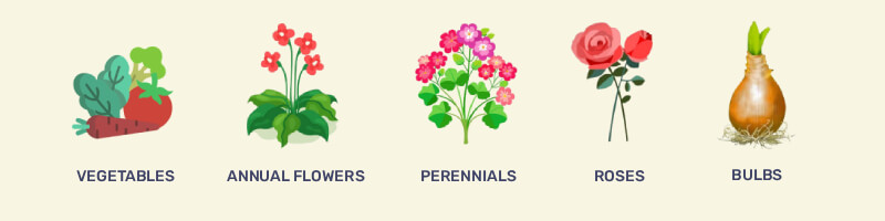 | Rose planting holes | Mix 50/50 with native soil | At planting |