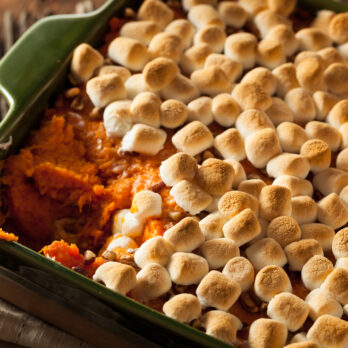 Cook the Sweet Potatoes- Preheat oven to 375°F (190°C).- Boil or steam sweet potatoes until very tender (about 15–20 minutes).- Drain well. Mash & FlavorIn a large bowl:- Mash the sweet potatoes until smooth.- Add butter, maple syrup/brown sugar, vanilla, cinnamon, nutmeg, and salt.- Fold in chopped herbs or nuts if using.Taste → adjust sweetness or spices as you like. Bake the Base- Spread the sweet potato mixture into a buttered baking dish.- Bake uncovered for 20 minutes. Add Marshmallows & Finish- Remove from oven and top generously with mini marshmallows.- Return to oven for 8–10 minutes, or until marshmallows are golden and melty.- For a toasted campfire look: switch to broil for 1 minute — watch closely!